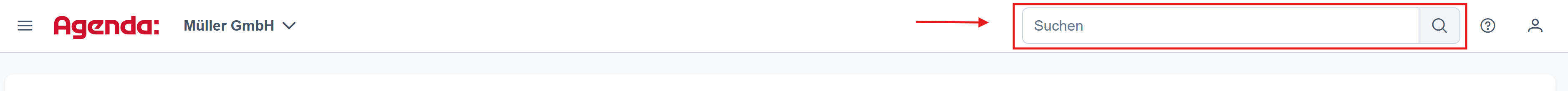- Wenn Sie einen Mandanten ausgewählt haben, lässt sich die Suche über das Suchfeld oben rechts auf der Seite starten:
